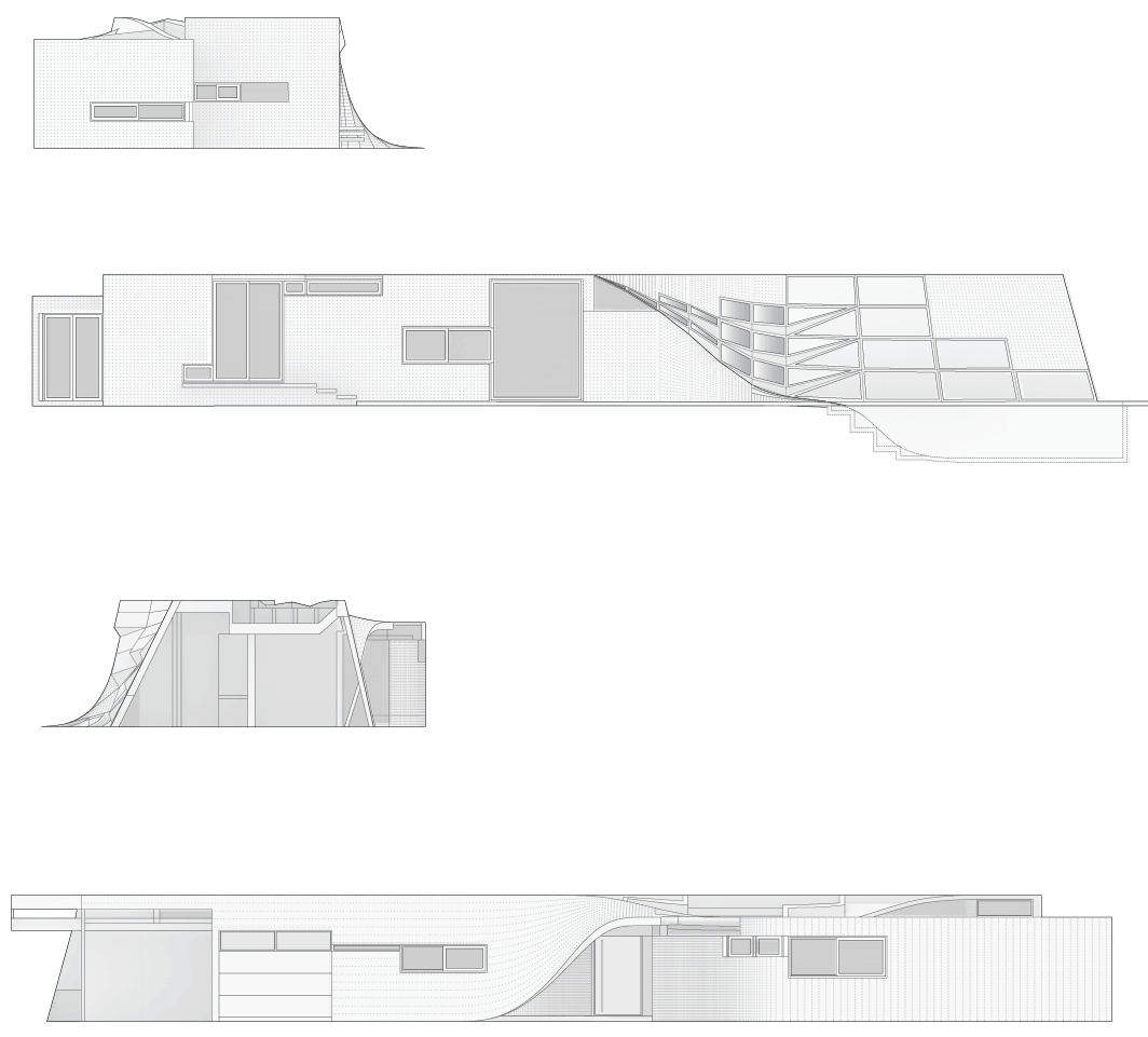 the effects of transparency and mass is explored through systematic cuts of both the facade